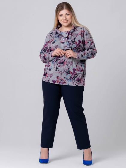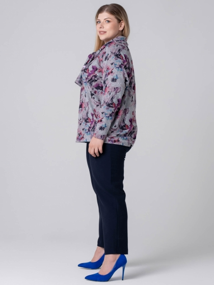 Эффектный джемпер свободного силуэта выполнен из мягкого трикотажного полотна с абстрактным рисунком, выполненным в технике Digital. Модель с круглой горловиной, оформленной мягкой стойкой , которая на левой стороне полочки переходит в небольшой галстук. Свободные стороны галстука можно зафиксировать декоративной булавкой, формируя степень прилегания и форму узла. Рукав длинный, зауженный к низу. Этот джемпер - идеальный выбор для тех, кто ценит комфорт и хочет выглядеть оригинально.