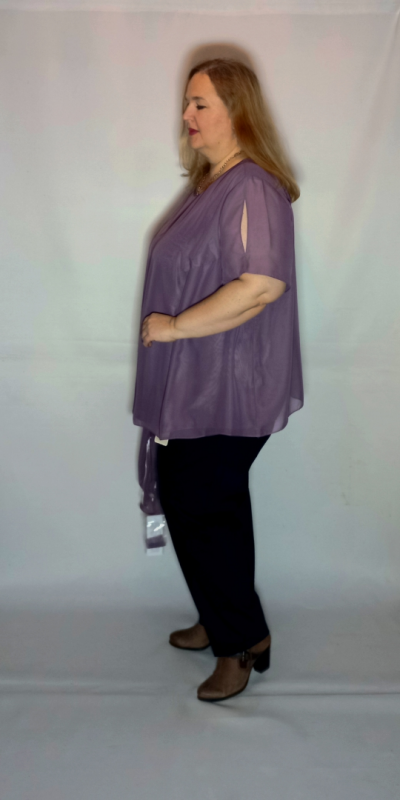 Комплект состоит из кардиган и блузы. Выполнены из креп шифона. Ткань тонкая, но не рыхлая, воздушная, не эластичная, приятная и дышащая.