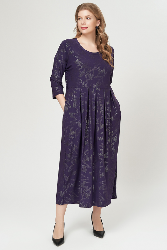 Нарядное платье из струящегося трикотажа - масло с блестящим принтом.