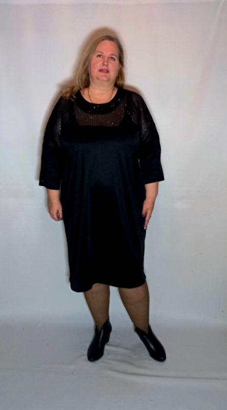 Рукав 3/4,спущенное плечо, по верхней поверхности "лампас" из сетки с пайетками