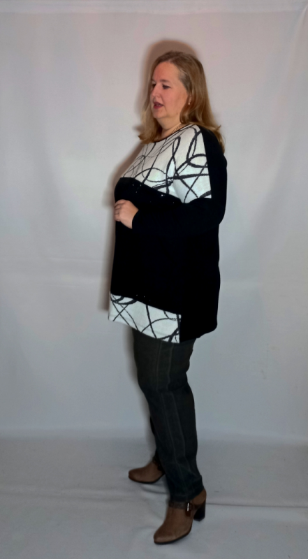 Полочка сложнокроенная: кокетка и нижняя планка из трикотажа альпака, декор термостразами