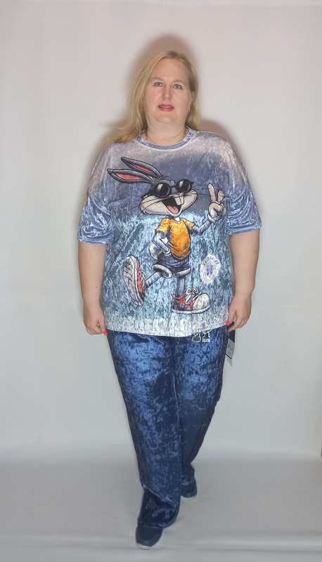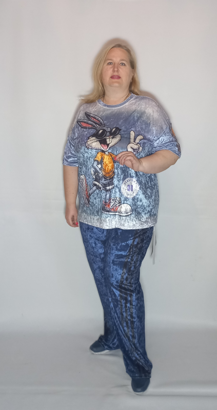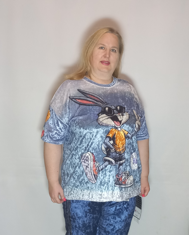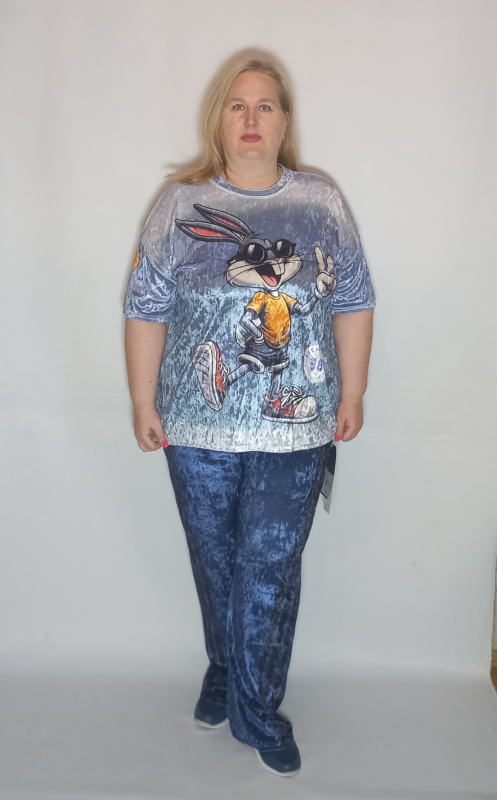 Шикарная туника- футболка выполнена из мягкого, очень эластичного мраморного велюра с рисунком амбре и тканным принтом.